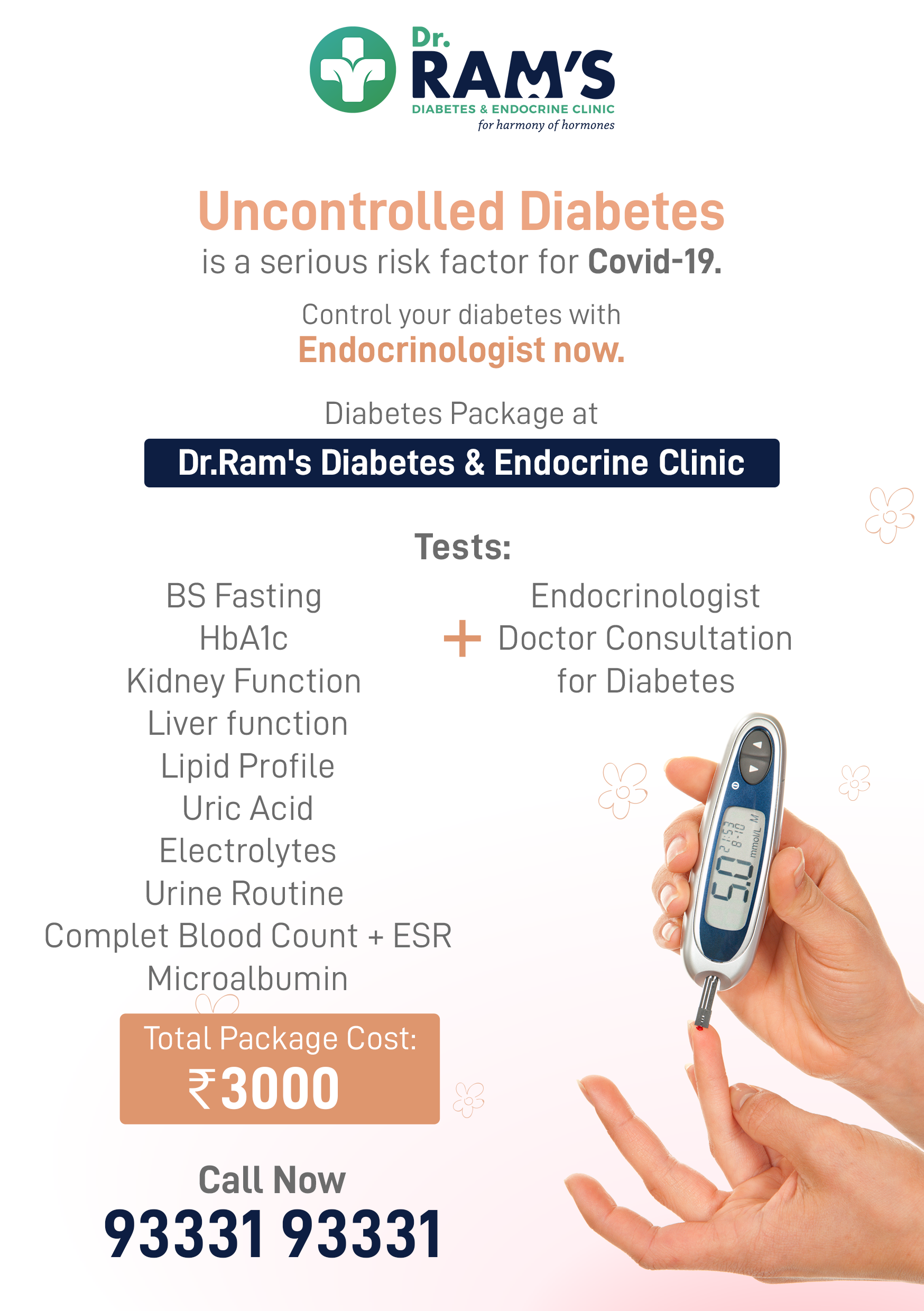 Dr.S. Ramkumar is a pediatric and adult diabetologist and endocrinologist in chennai who deals with hormonal diseases like diabetes mellitus, thyroid disorders, obesity, PCOS, male sexual dysfunction, osteoporosis, pubertal disorders, short stature, etc. He had extensive experience in Insulin Pump in poorly controlled diabetes both T1DM and T2DM in children and adults.
